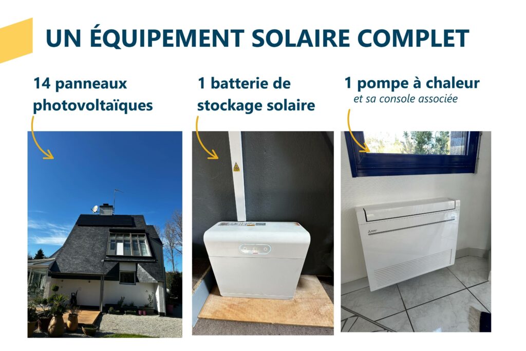 Les 14 panneaux photovoltaïques installés en toiture captent l’énergie du soleil, et la transforment en électricité pour alimenter les différents équipements de la maison, notamment la nouvelle pompe à chaleur.